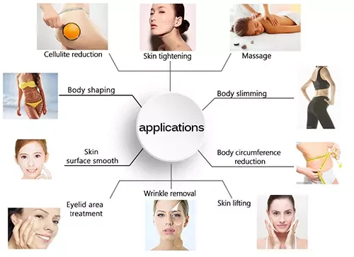 • 1. Combined with bi-polar RF and infrared, blue energy; the vacuum suction coordinated with mechanical outer automatic rollers;